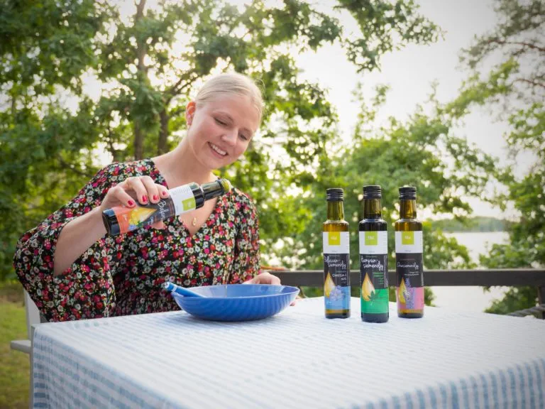 Kylmäpuristettu pellavansiemenöljy täynnä hyviä rasvahappoja
