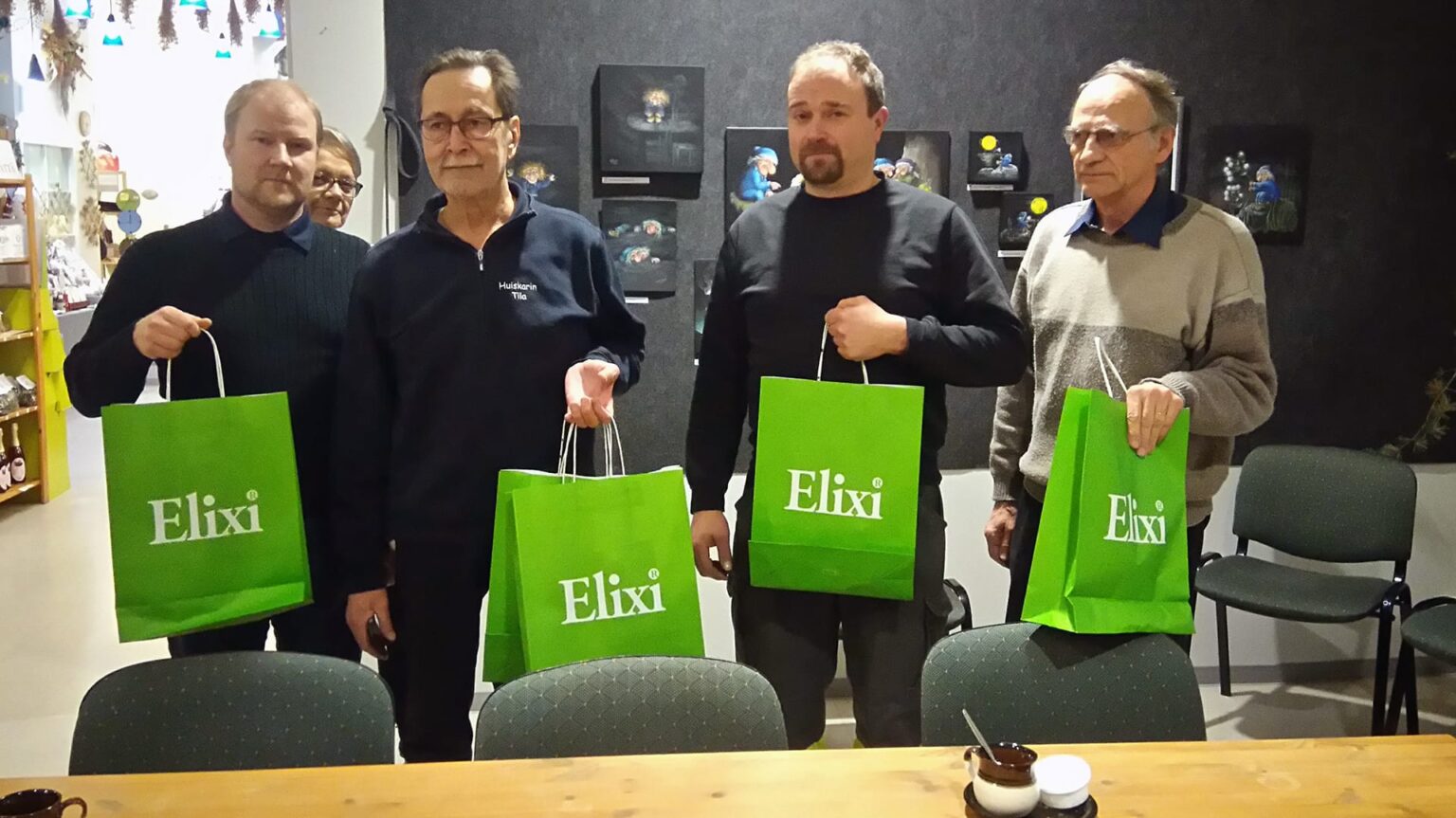 Viljelyosion jälkeen esittelyvuorossa oli Elixin markkinointiosaston toiminta ja viljelijät pääsivät tutustumaan ja maistelemaan öljypellava- ja öljyhampputuotteita, joiden eteen he itse tekevät tinkimättömästi työtä. Raadin ykkössuosikiksi nousi karpalo-makurouhe. Hyviä tuotekehitysideoitakin viljelijöiltä saatiin! Ilahduttavaa oli myös kuulla, että öljypellavatuotteet olivat jo valmiiksi lähes kaikkien viljelijöiden päivittäisessä käytössä. Tälläkin kertaa kotiin viemisiksi lähti niin pellavarouheita kuin ikisuosikkina tunnettua pellavalakuakin.