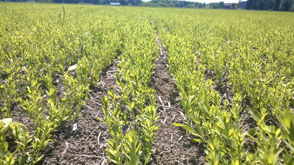 5.6.2017 | Toukokuun loppupuolen lämmin sää vauhditti öljypellavapeltojen taimettumista.