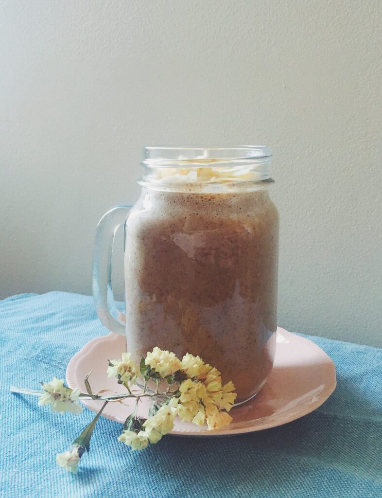 Kylmällä ilmalla ei tee mieli aloittaa aamua jäisellä smoothiella. Siksipä keksin lämmittää kauramaidon ja avot, lämmin aamiais-smoothie. Ihmettelen vain miksen keksinyt tätä aiemmin? Resepti ja