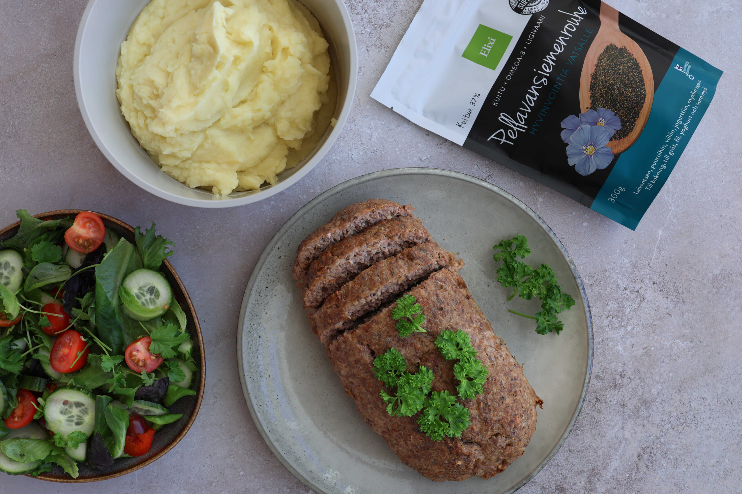 Tässä versiossa murekkeeseen tulee pieni mutta merkityksellinen twisti. Elixi Pellavansiemenrouhe tuo rakenteeseen mehevyyttä ja ruokaan lisää ravinteita, huomaamattomasti ja ilman, että maku muuttuu. Pellavansiemenrouhe on helppo tapa lisätä ruokavalioon kuitua ja pehmeitä rasvoja, ja se sopii erityisen hyvin jauheliharuokiin, joissa se sitoo nestettä ja pitää lopputuloksen mehukkaana. Lopputulos on mureke, joka pysyy koossa, leikkautuu kauniisti ja maistuu koko perheelle.