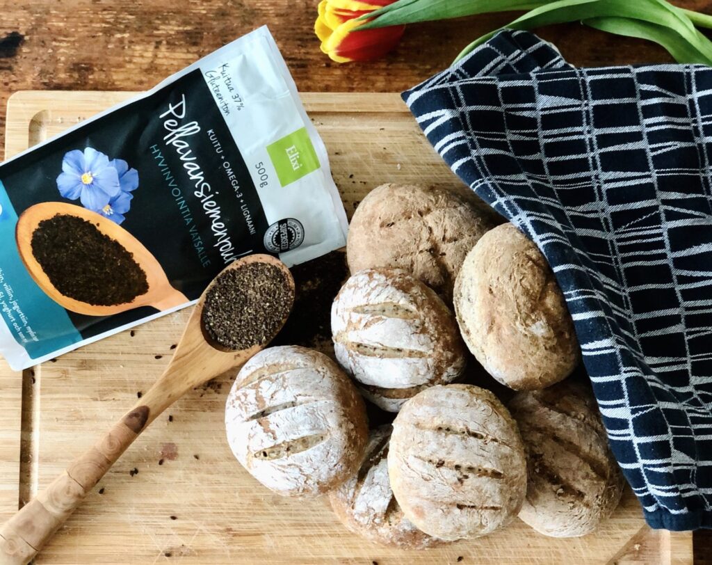 Tässä helppo ja muunneltava leipäohje kaikille, jotka arvostavat vaivatonta leivän leivontaa. Kaappiin kannattaa aina varata jauhoja (vehnä, ruis-, hiivaleipäjauhoja), hiivaa, suolaa ja sokeria ja niilläkin jo pärjää. Jos haluaa leivästä astetta ravitsevampaa, voi joukkoon lisätä esimerkiksi pellavansiemen- tai hampunsiemenrouhetta. Näistä saa kuitua, kasviproteiinia, omega-3-rasvahappoja, lignaania ja kivennäisaineita. Tässä ohjeessa on käytetty vehnäjauhojen lisäksi Elixi Pellavansiemenrouhetta, ruisjauhoja ja kaurahiutaleita.