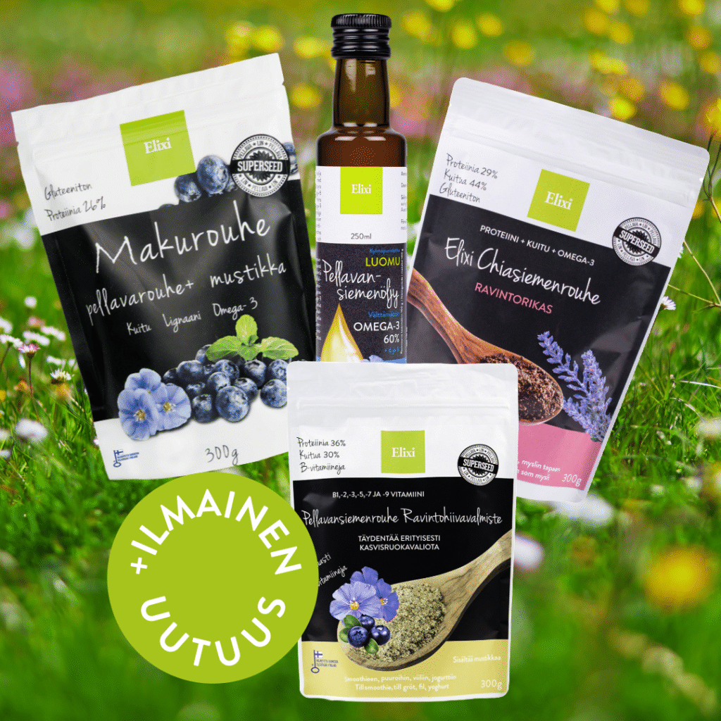 Tilaa ravintorikkaat Elixi-tuotteet kätevästi pakettina. Paketit sisältävät kuiturikkaita rouheita ja omega 3-rikkaita öljyjä, ja ovat loistava valinta vaikka lahjaksi läheiselle tai itselle!